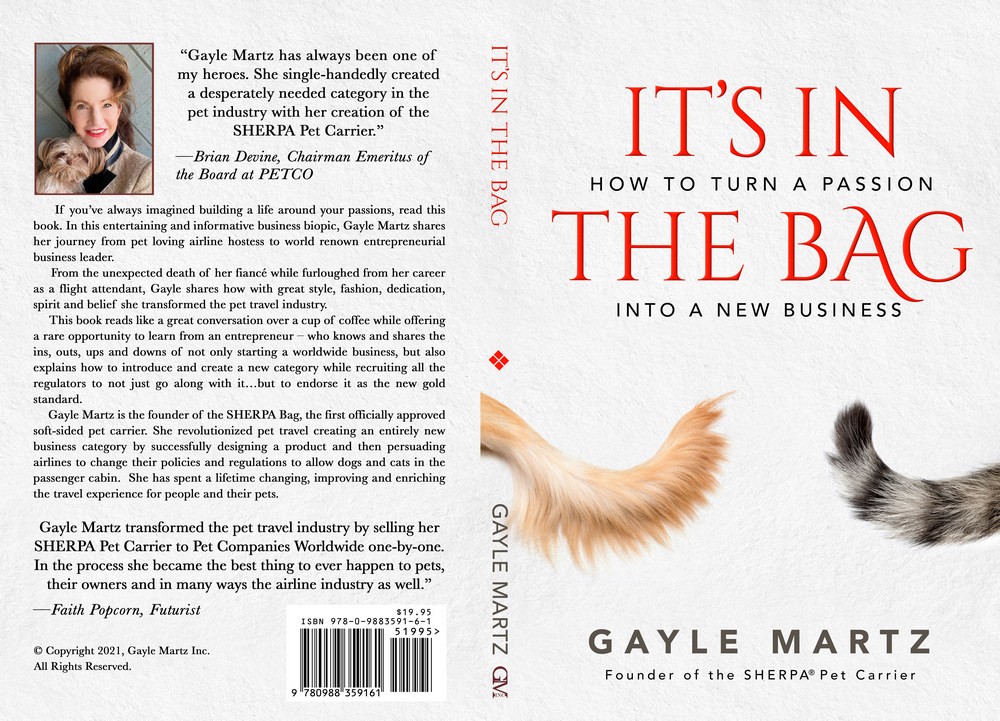 Are you wondering what Ms. Martz is up to these days?You can find her speaking at pet events, she has written a fantastic book called "IT'S IN THE BAG" and she is keeping busy with her two minute video series, Travel Tails with SHERPA, on YouTube.It is a great cartoon of her dog, SHERPA, giving Pet Parents tips and advice on raising a happier, healthier pet.